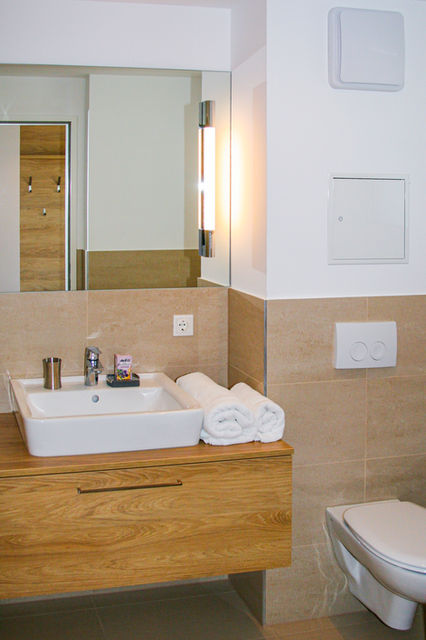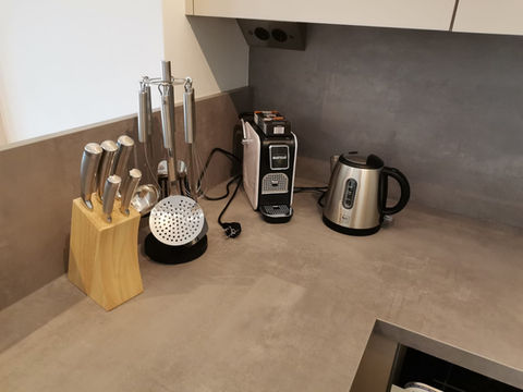 In unserer Küche finden Sie einen Herd, Backofen, Geschirrspüler und Kühlschrank, Wasserkocher, Kaffeemaschine, Kochutensilien, Geschirr und Gläser. Bettwäsche und Handtücher befinden sich ebenso bereits vor Ort. Alle Wohnungen sind barrierefrei und befinden sich im 1. Liftstock